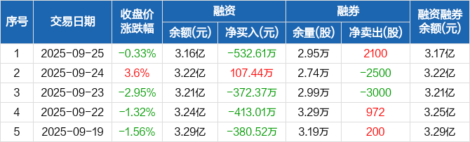 振华新材:融资净偿还532.61万元,融资余额3.16亿元(09-25)