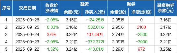 振华新材:融资净偿还124.25万元,融资余额3.15亿元(09-26)