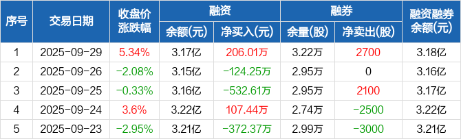 振华新材:融资净买入206.01万元,融资余额3.17亿元(09-29)