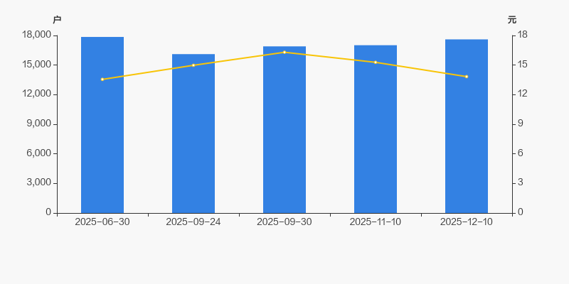 自2025年9月24日以来,公司股东户数连续3期上涨,截至目前增幅为9.28%。2025年9月24日至2025年12月10日区间股价下降7.68%。