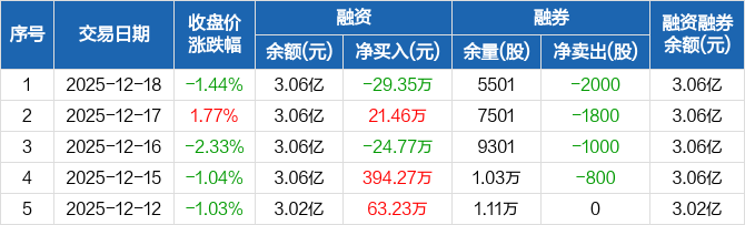 振华新材:融资净偿还29.35万元,融资余额3.06亿元(12-18)