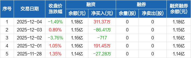 佳驰科技:融资净买入311.37万元,融资余额1.18亿元(12-04)