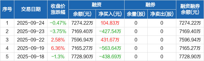 益诺思:融资净买入104.83万元,融资余额7274.22万元(09-24)