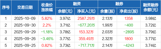 宏微科技:融资净买入2587.29万元,融资余额3.97亿元(10-09)