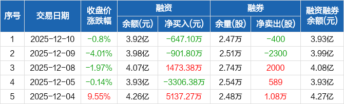 宏微科技:融资净偿还647.1万元,融资余额3.92亿元(12-10)