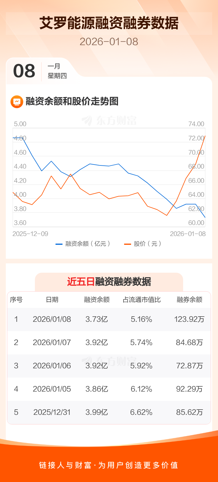 交易所最新数据显示,艾罗能源于2026年1月8日获融资买入5595.57万元,融资偿还7457.53万元,当日融资净偿还1861.96万元。目前,该股融资余额3.73亿,占流通市值比例为5.16%。
