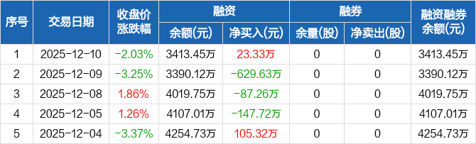 唯赛勃:融资净买入23.33万元,融资余额3413.45万元(12-10)