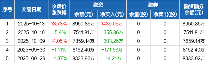 爱科赛博:融资净买入1439.05万元,融资余额8950.86万元(10-13)