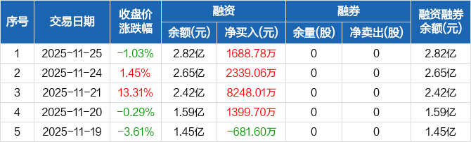 爱科赛博:融资余额2.82亿元,创历史新高(11-25)