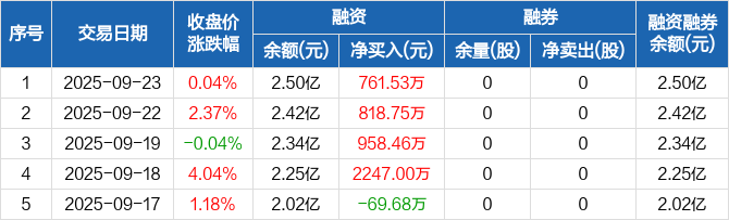 艾森股份:融资余额2.5亿元,创历史新高(09-23)