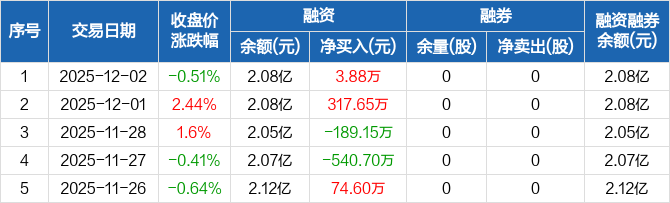 同益中:融资净买入3.88万元,融资余额2.08亿元(12-02)