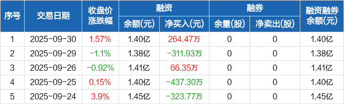拉普拉斯:融资净买入264.47万元,融资余额1.4亿元(09-30)