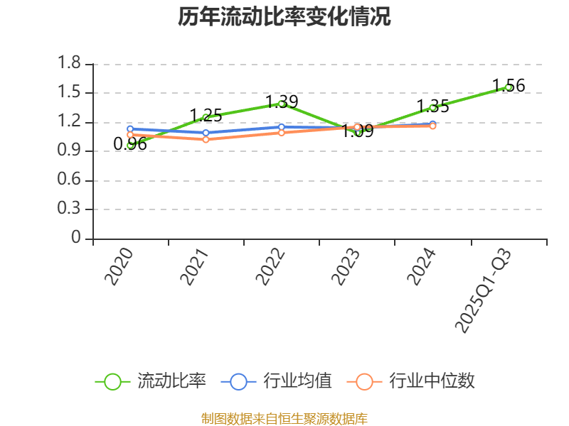 2025年前三季度,公司流动比率为1.56,速动比率为1。