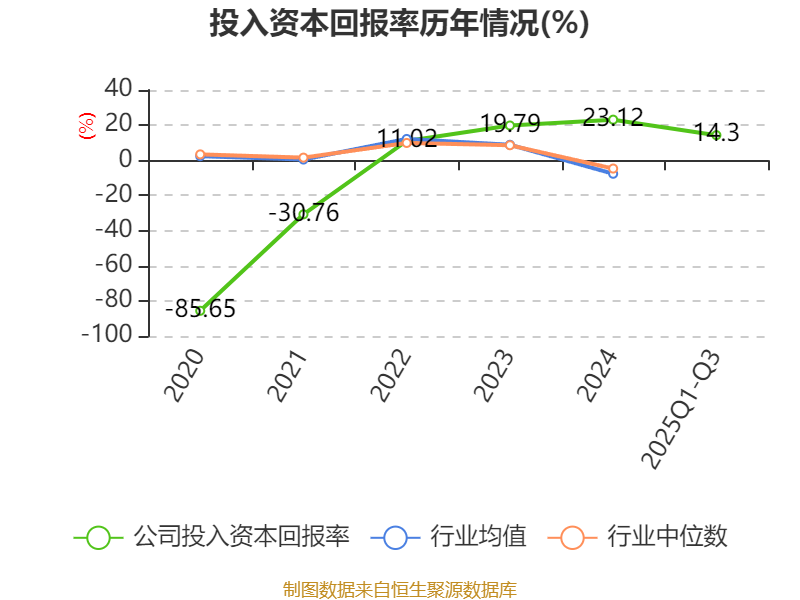 盈利能力方面, 2025年前三季度公司加权平均净资产收益率为15.29%,同比下降8.46个百分点。公司2025年前三季度投入资本回报率为14.3%,较上年同期下降7个百分点。