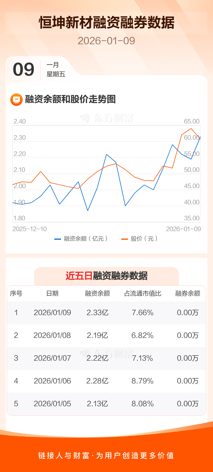 交易所最新数据显示,恒坤新材于2026年1月9日获融资买入9717.76万元,融资偿还8305.03万元,当日融资净买入1412.73万元。目前,该股融资余额2.33亿,占流通市值比例为7.66%。