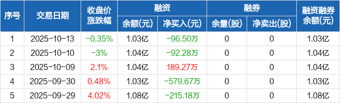 中自科技:融资净偿还96.5万元,融资余额1.03亿元(10-13)