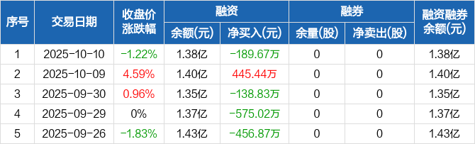金天钛业:融资净偿还189.67万元,融资余额1.38亿元(10-10)