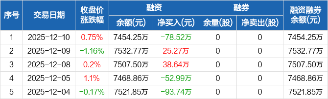 汉邦科技:融资净偿还78.52万元,融资余额7454.25万元(12-10)