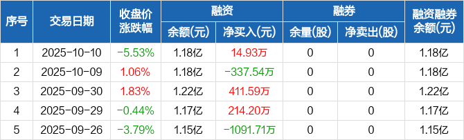 胜科纳米:融资净买入14.93万元,融资余额1.18亿元(10-10)