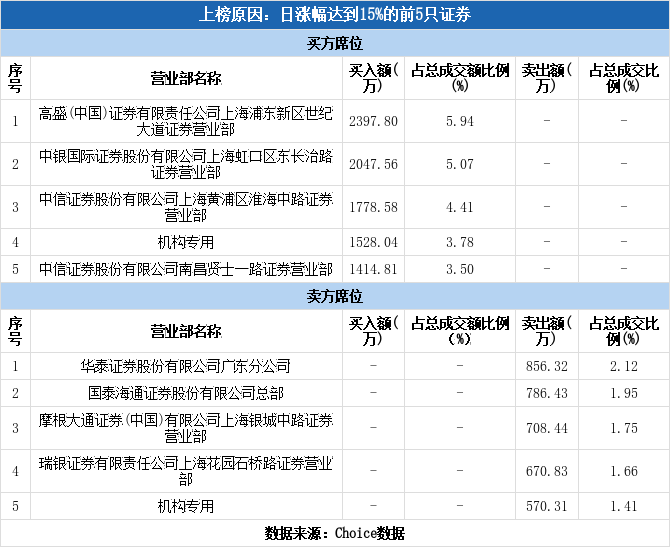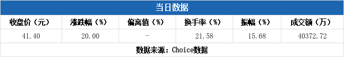 上交所2026年1月7日交易公开信息显示,必贝特因属于日涨幅达到15%的前5只证券、有价格涨跌幅限制的连续3个交易日内收盘价格涨幅偏离值累计达到30%的证券而登上龙虎榜。必贝特当日报收41.40元,涨跌幅为20.00%,换手率21.58%,振幅15.68%,成交额4.04亿元。