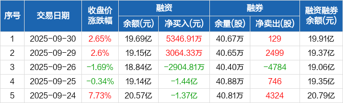 中控技术:融资净买入5346.91万元,融资余额19.69亿元(09-30)