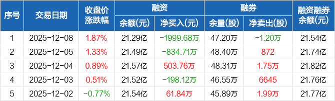 中控技术:融资净偿还1999.68万元,融资余额21.29亿元(12-08)
