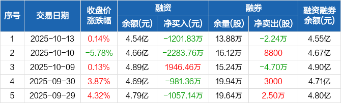 五矿新能:融资净偿还1201.83万元,融资余额4.54亿元(10-13)