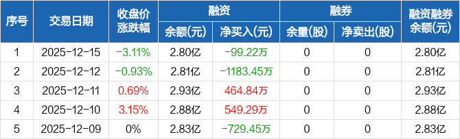 西安奕材:融资净偿还99.22万元,融资余额2.8亿元(12-15)