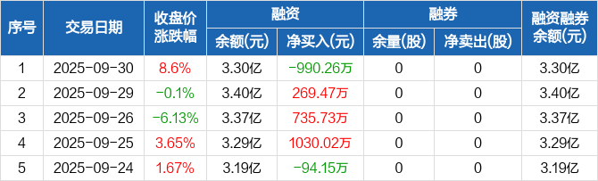 海天瑞声:融资净偿还990.26万元,融资余额3.3亿元(09-30)