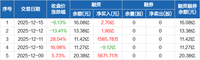 摩尔线程:融资净买入2.7亿元,两市排名第九(12-15)