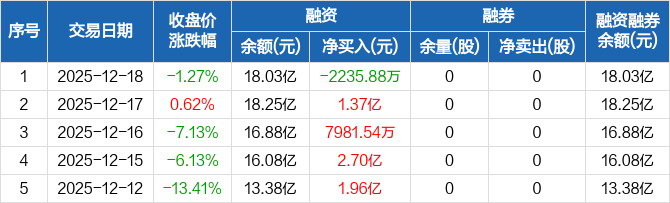 摩尔线程:融资净偿还2235.88万元,融资余额18.03亿元(12-18)