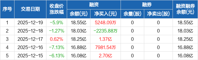 摩尔线程:融资净买入5248.09万元,融资余额18.55亿元(12-19)