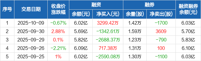 艾为电子:融资净买入3299.42万元,融资余额6.02亿元(10-09)