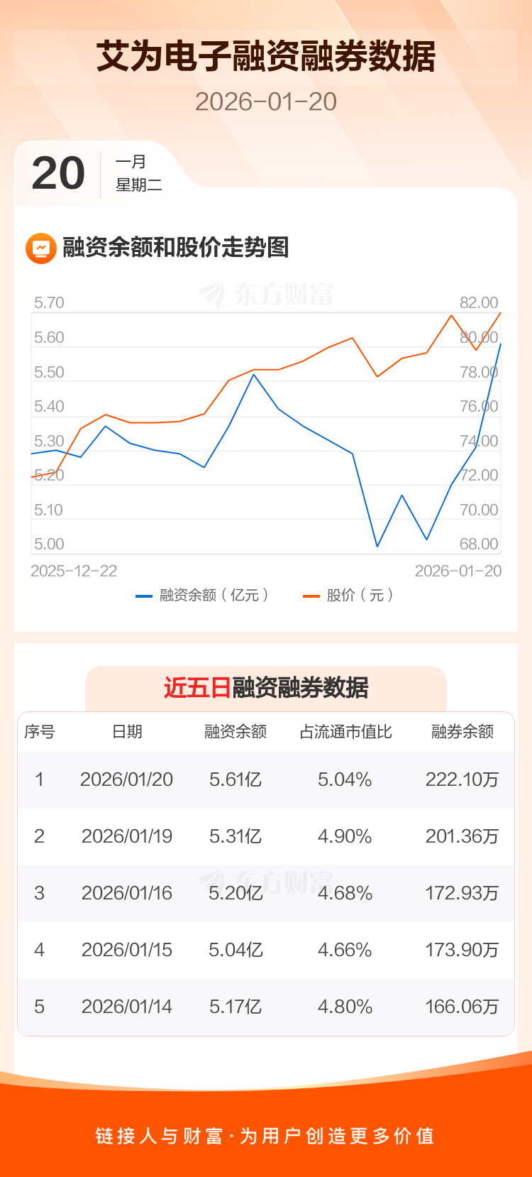 艾为电子:融资净买入3077.78万元,融资余额5.61亿元