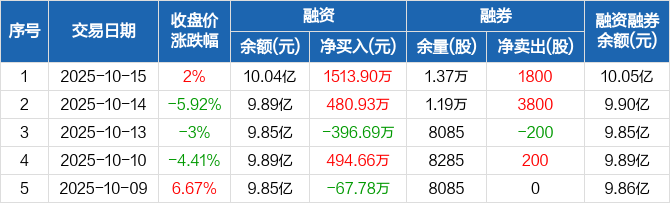 瑞可达:融资净买入1513.9万元,融资余额10.04亿元(10-15)