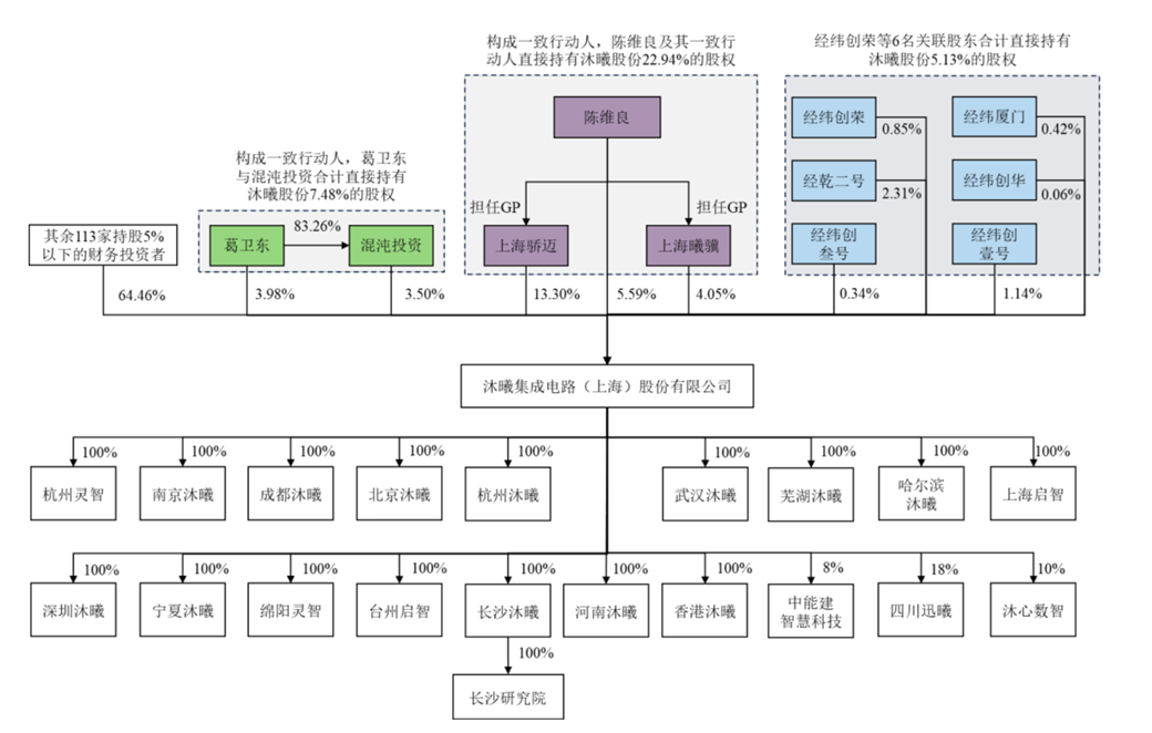 沐曦股份股东名单中不乏知名投资机构。葛卫东及其控制的混沌投资合计持有公司7.48%的股份,“经纬系”6家关联公司合计持有5.13%的股份。