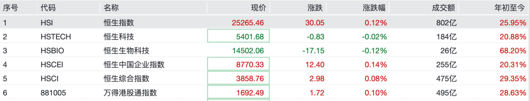 港股方面,恒生指数、恒生中国企业指数等上涨,恒生科技、恒生生物科技等指数微跌。个股方面,腾讯控股、阿里巴巴、美团、中芯国际、携程集团、京东集团、百度集团等纷纷上涨。