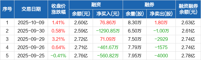 天能股份:融资净买入76.86万元,融资余额2.6亿元(10-09)