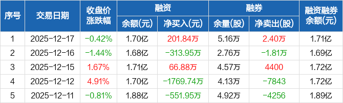 天能股份:融资净买入201.84万元,融资余额1.7亿元(12-17)