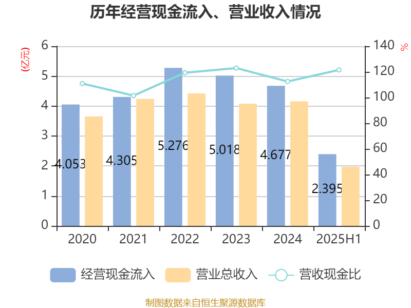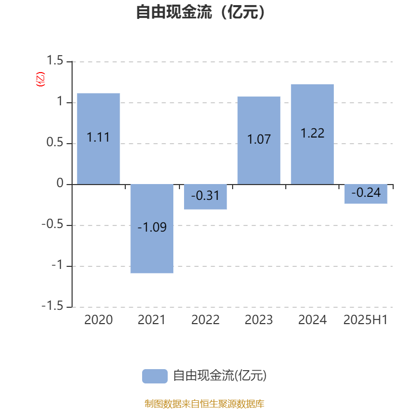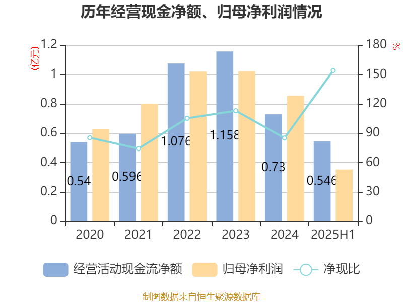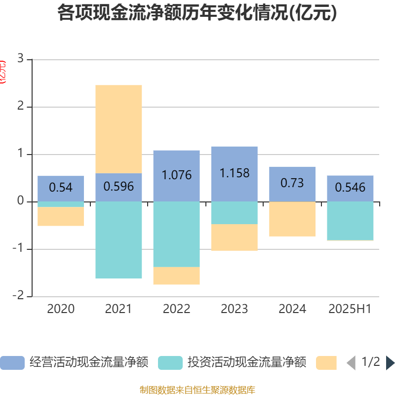 2025年上半年,公司经营活动现金流净额为5459.83万元,同比增长46.88%;筹资活动现金流净额-95.79万元,同比增加7417.13万元;投资活动现金流净额-8204.42万元,上年同期为-450.58万元。
