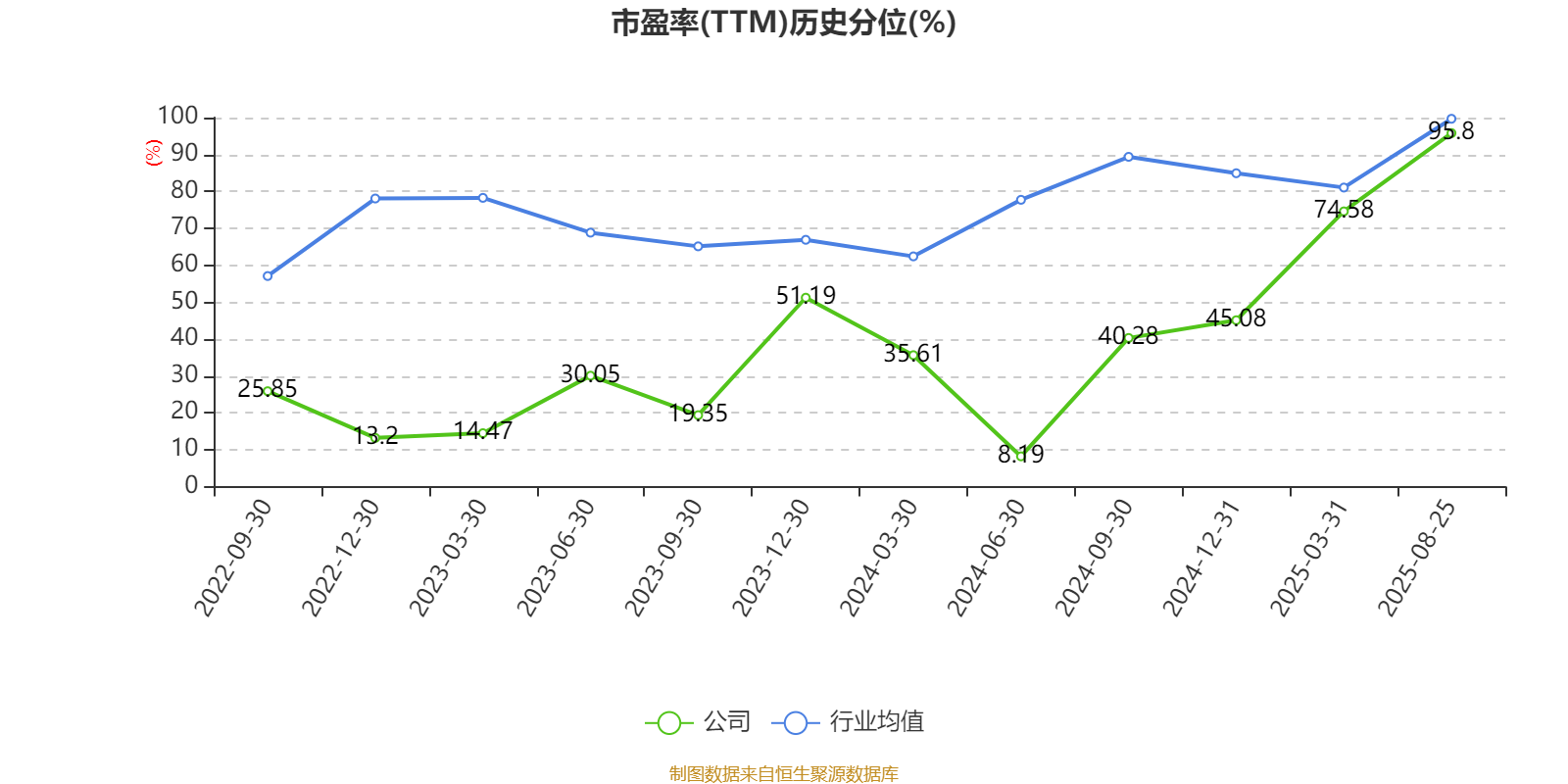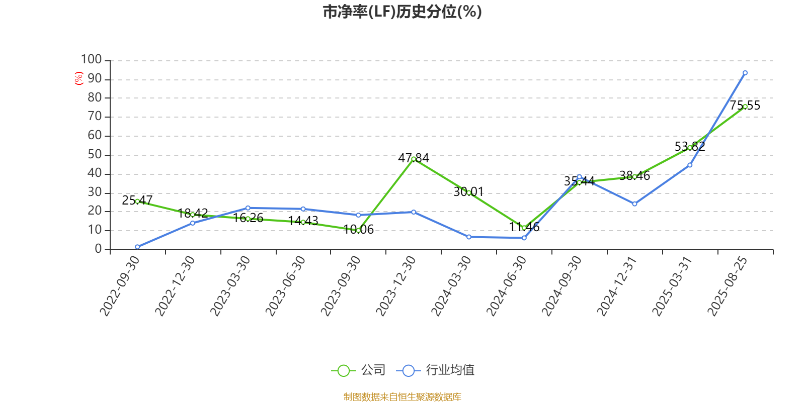 市盈率、市净率为负时,不显示当期分位数,会导致折线图中断。