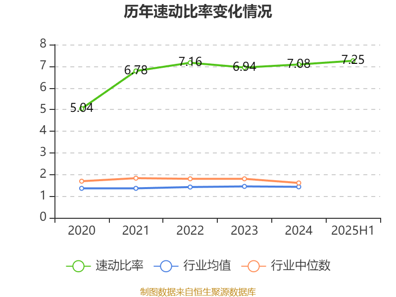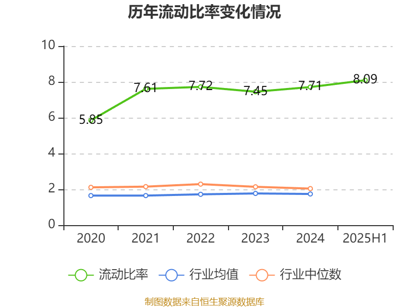 2025年上半年,公司流动比率为8.09,速动比率为7.25。