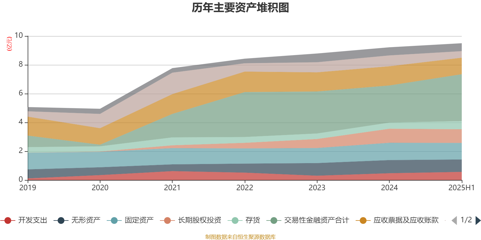资产重大变化方面,截至2025年上半年,公司交易性金融资产合计较上年末增加26.01%,占公司总资产比重上升6.23个百分点;货币资金较上年末减少38.98%,占公司总资产比重下降3.35个百分点;应收票据及应收账款较上年末减少13.98%,占公司总资产比重下降2.39个百分点;存货较上年末增加33.49%,占公司总资产比重上升1.37个百分点。