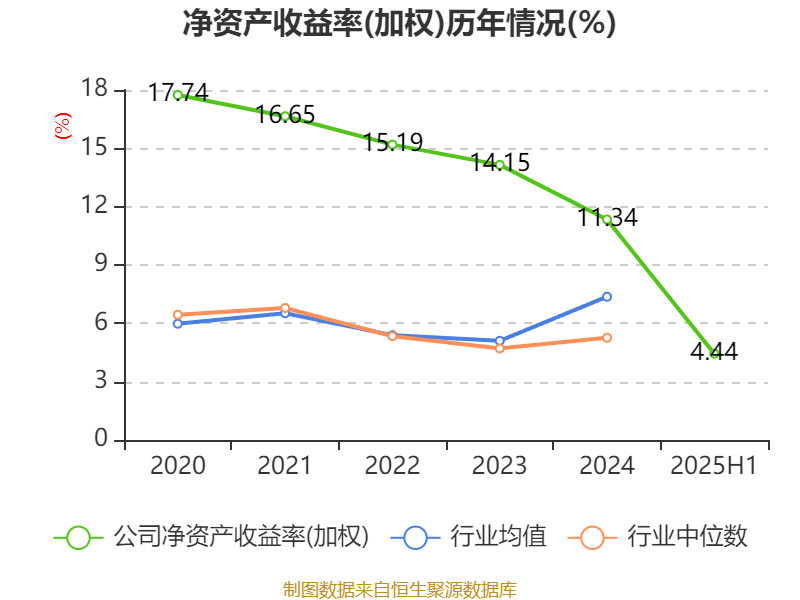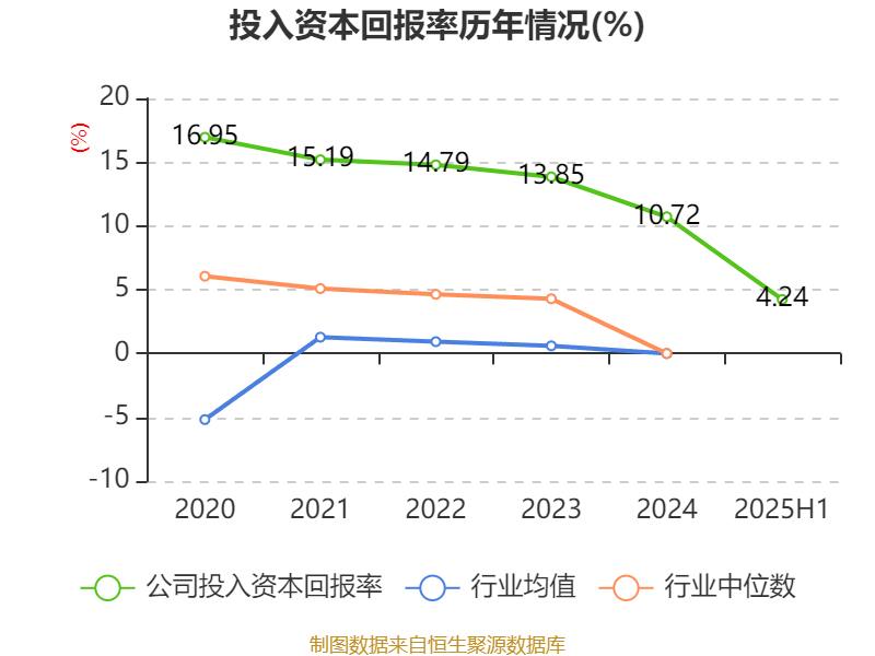 盈利能力方面, 2025年上半年公司加权平均净资产收益率为4.44%,同比下降0.77个百分点。公司2025年上半年投入资本回报率为4.24%,较上年同期下降0.89个百分点。
