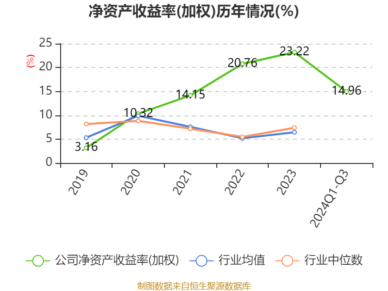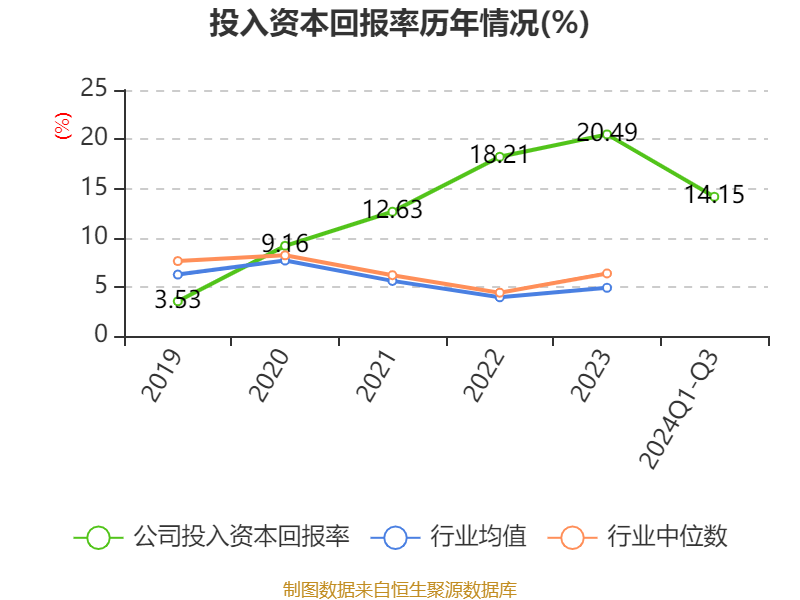 盈利能力方面, 2024年前三季度公司加权平均净资产收益率为14.96%,同比下降2.93个百分点。公司2024年前三季度投入资本回报率为14.15%,较上年同期下降0.22个百分点。