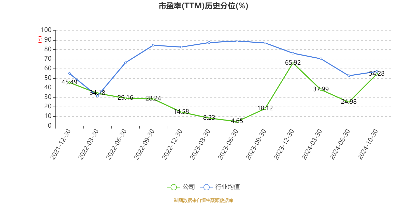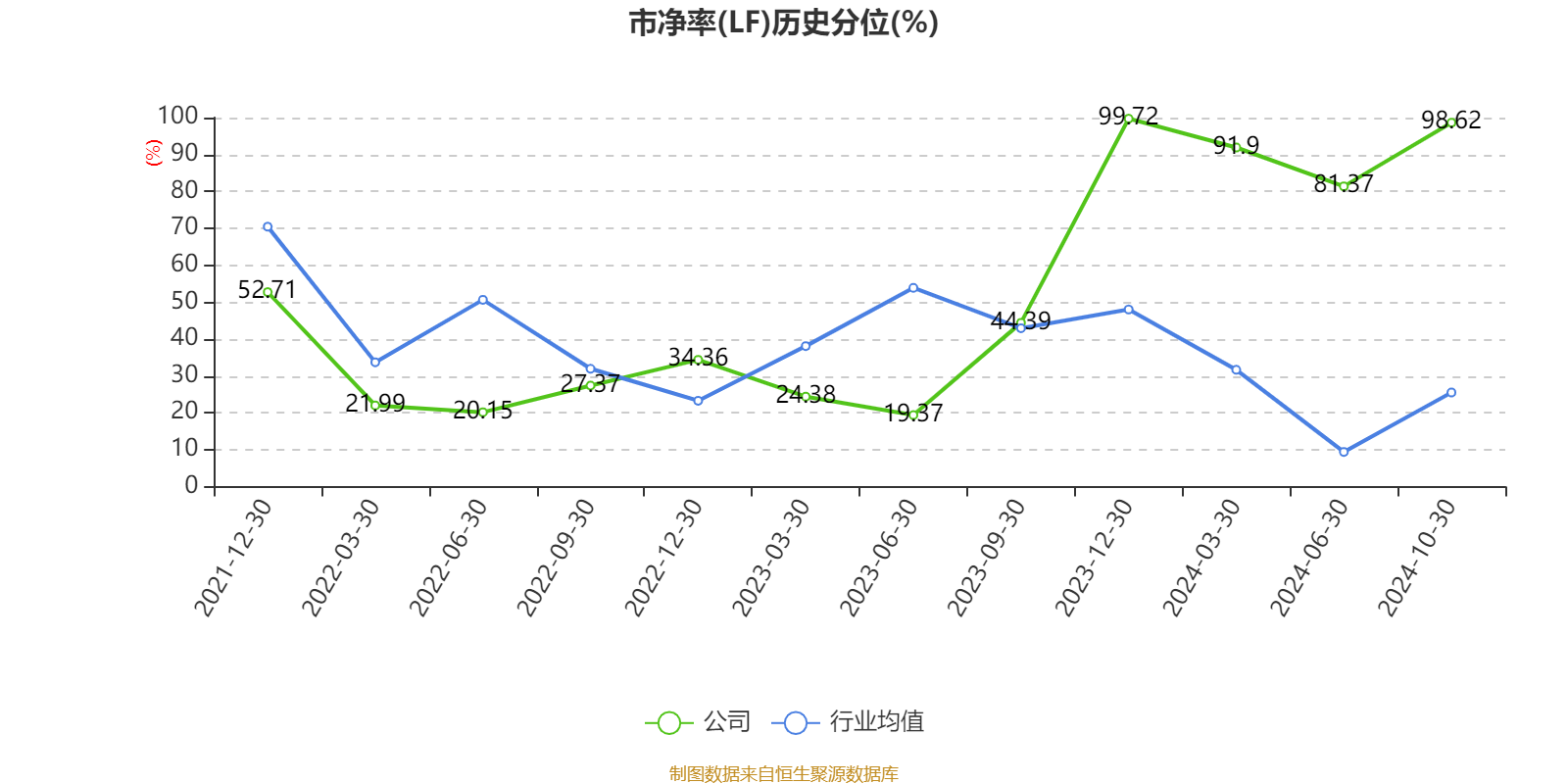 市盈率、市净率为负时,不显示当期分位数,会导致折线图中断。
