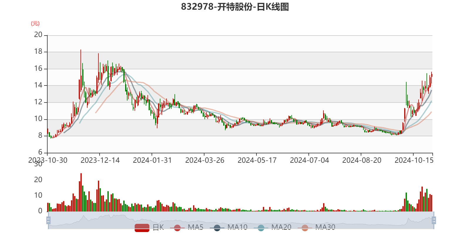 以10月30日收盘价计算,开特股份目前市盈率(TTM)约为21.21倍,市净率(LF)约4.35倍,市销率(TTM)约3.67倍。