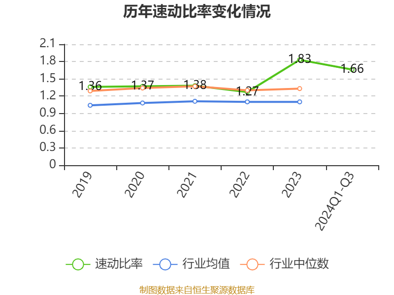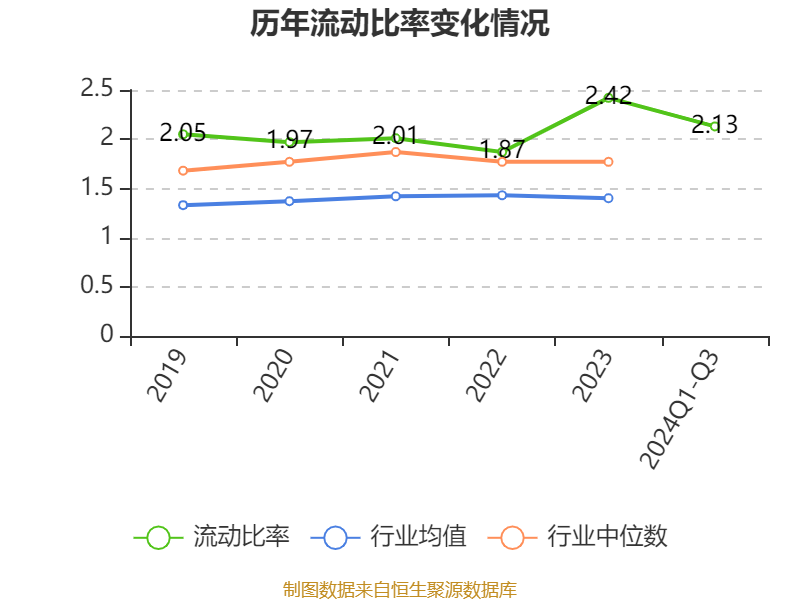 2024年前三季度,公司流动比率为2.13,速动比率为1.66。