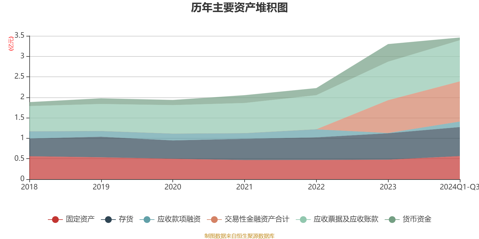 资产重大变化方面,截至2024年三季度末,公司货币资金较上年末减少85.3%,占公司总资产比重下降10.42个百分点;交易性金融资产合计较上年末增加22.5%,占公司总资产比重上升4.39个百分点;应收款项融资较上年末增加1848.38%,占公司总资产比重上升3.57个百分点;固定资产较上年末增加18.63%,占公司总资产比重上升2.1个百分点。