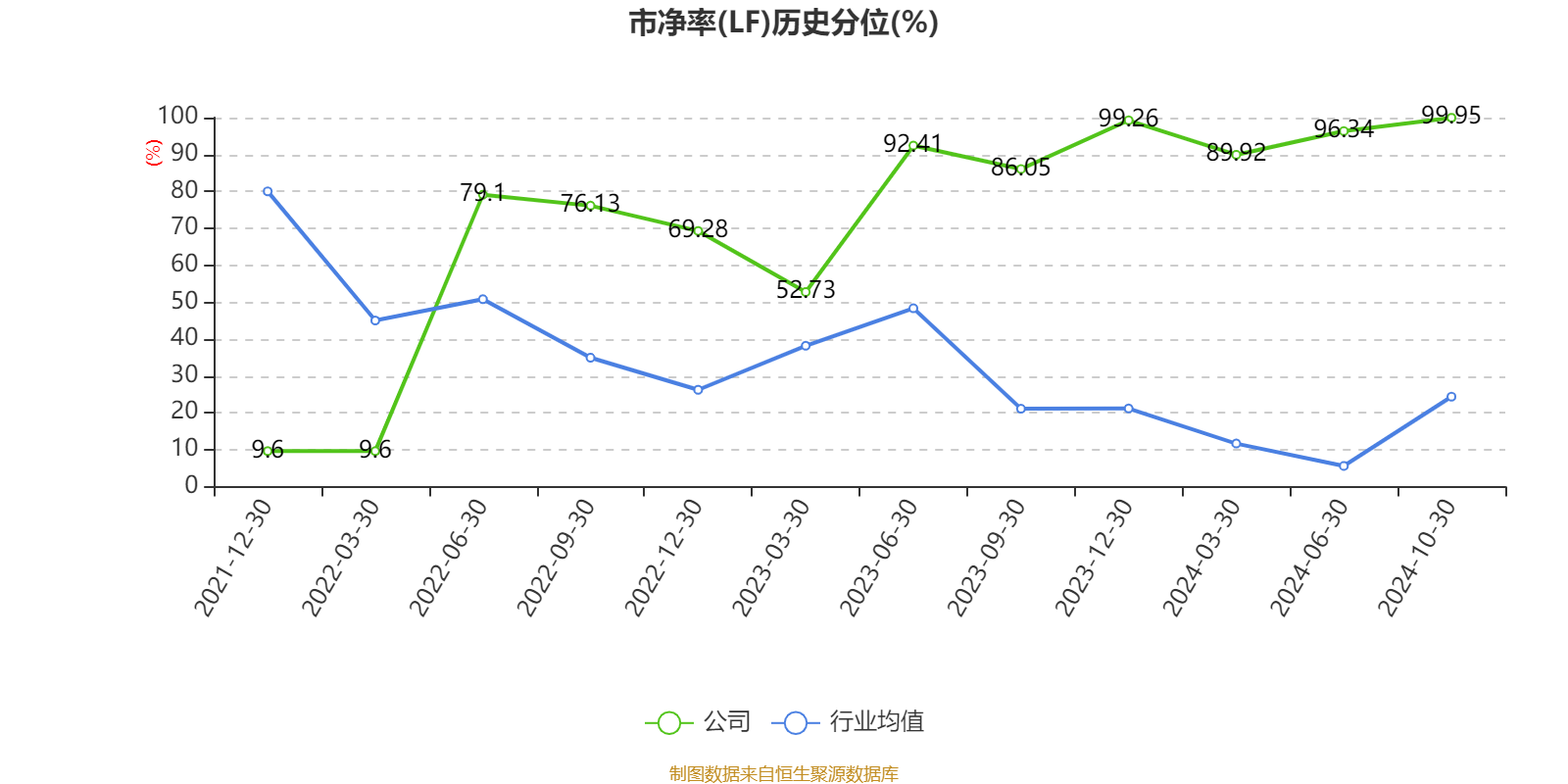 市盈率、市净率为负时,不显示当期分位数,会导致折线图中断。